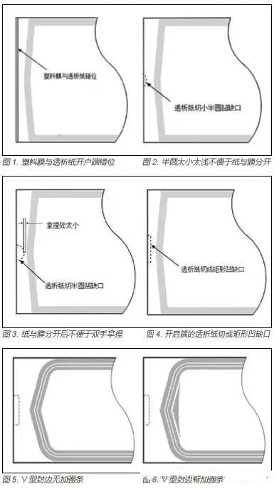 紙塑包裝袋在剝離打開時(shí),很容易出現(xiàn)有紙屑的現(xiàn)象。而出現(xiàn)這種情況后,大部分制袋操作工,都會(huì)認(rèn)為是操作不當(dāng)或材料的原因。當(dāng)然,也有部分確實(shí)是材料的性質(zhì)緣故,如涂膠紙涂膠的均勻情況不佳,膠水本身的粘合強(qiáng)度不合理等;還有是操作失誤造成剝離強(qiáng)度過(guò)大,而產(chǎn)生剝離時(shí)有紙屑現(xiàn)象。但還有很大一部分原因,是由于設(shè)計(jì)時(shí)的疏忽,沒(méi)有真正了解紙塑在燙合制袋時(shí)的實(shí)質(zhì),從而導(dǎo)致剝離打開時(shí)產(chǎn)生紙屑。